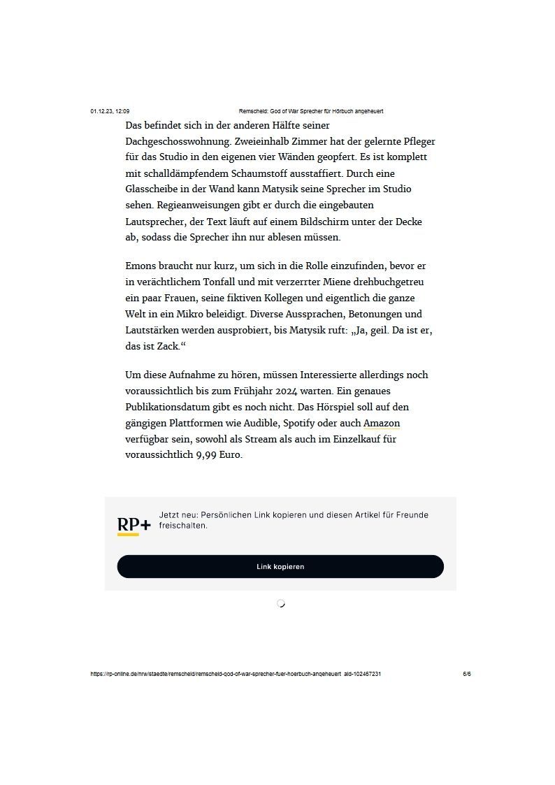 Ein unglaublich toller Artikel im offizellen Remscheider Blatt, dem RGA. Nach dem tollen Interview mit der noch viel sympathischeren Journalistin, waren wir gespannt auf die verschriftlichte Form und siehe da...unglaublich warme Worte über unsere Arbeit!!!